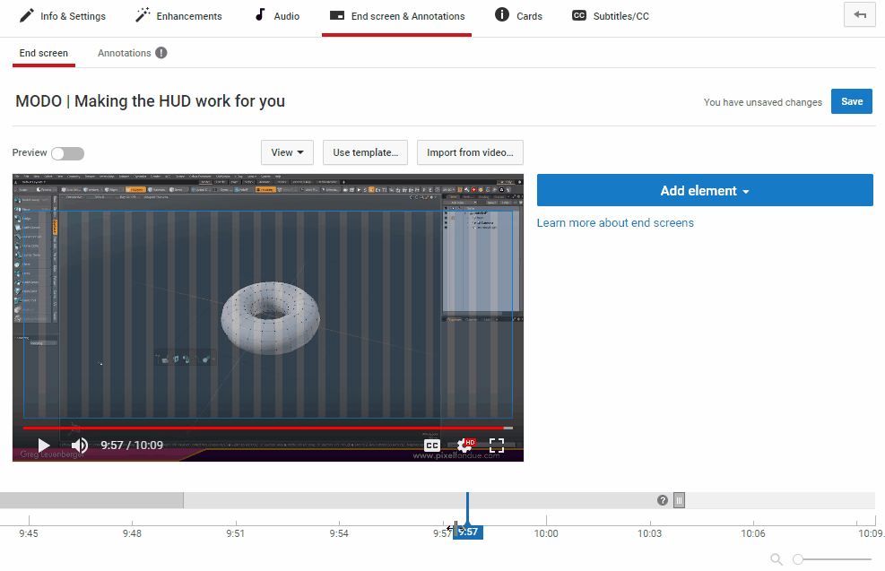 •YouTube End Screens. Use YouTube's End Screen features to add a Subscribe button to the end of your video. I also suggest adding your playlist so people can continue watching your videos. YouTube's 'recommended next video' works well too for multi-part videos. The important part is the Subscribe button so people forwarded links to our videos can easily subscribe. You can adjust how long the End Screen elements stay up. On long videos I usually have them there the last 5 seconds during the wrap up...for super short videos (like Vaughan is 60 seconds) you may want to hold the last frame for a few second giving users time to click on the playlist or subscribe button.